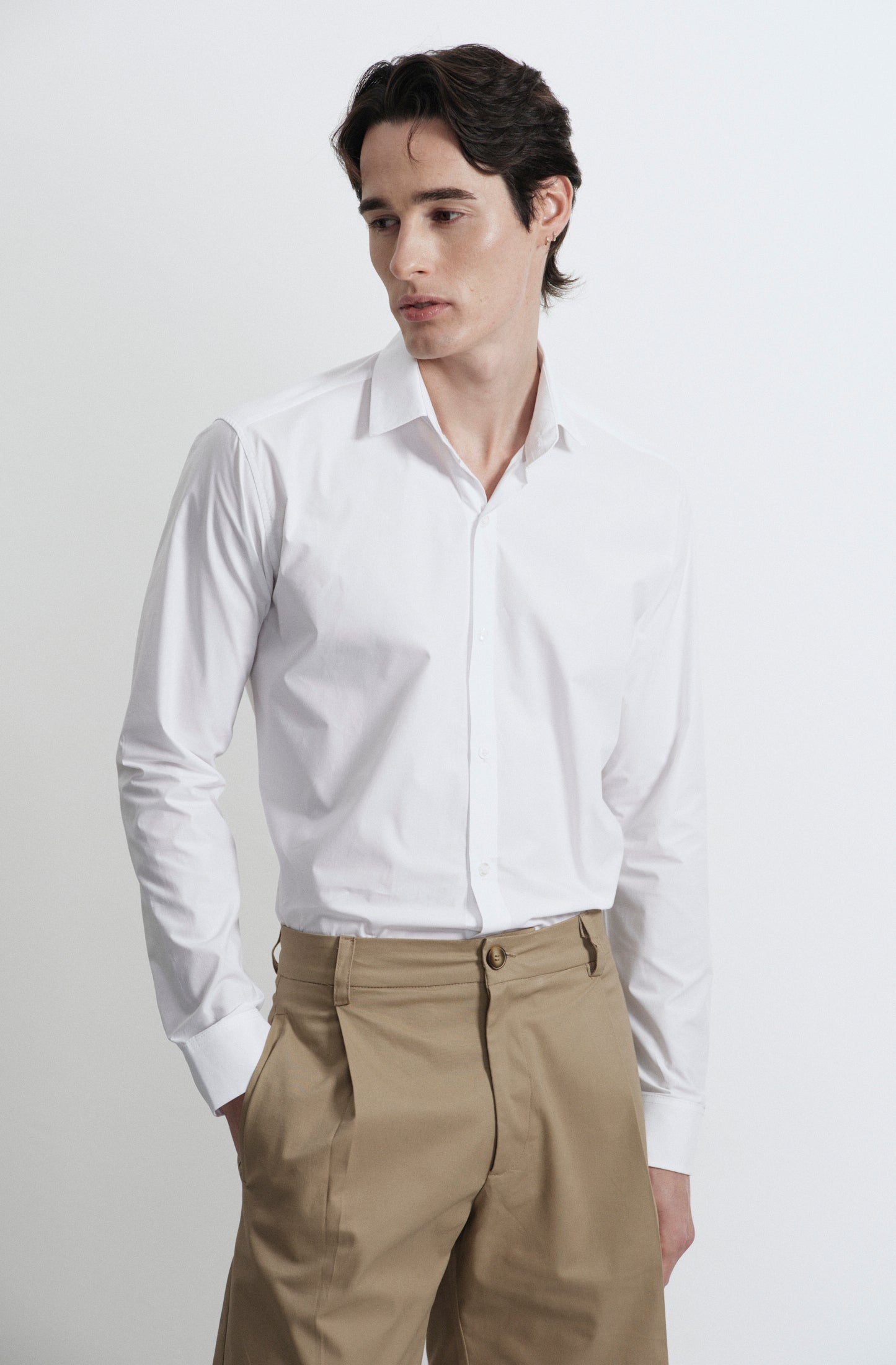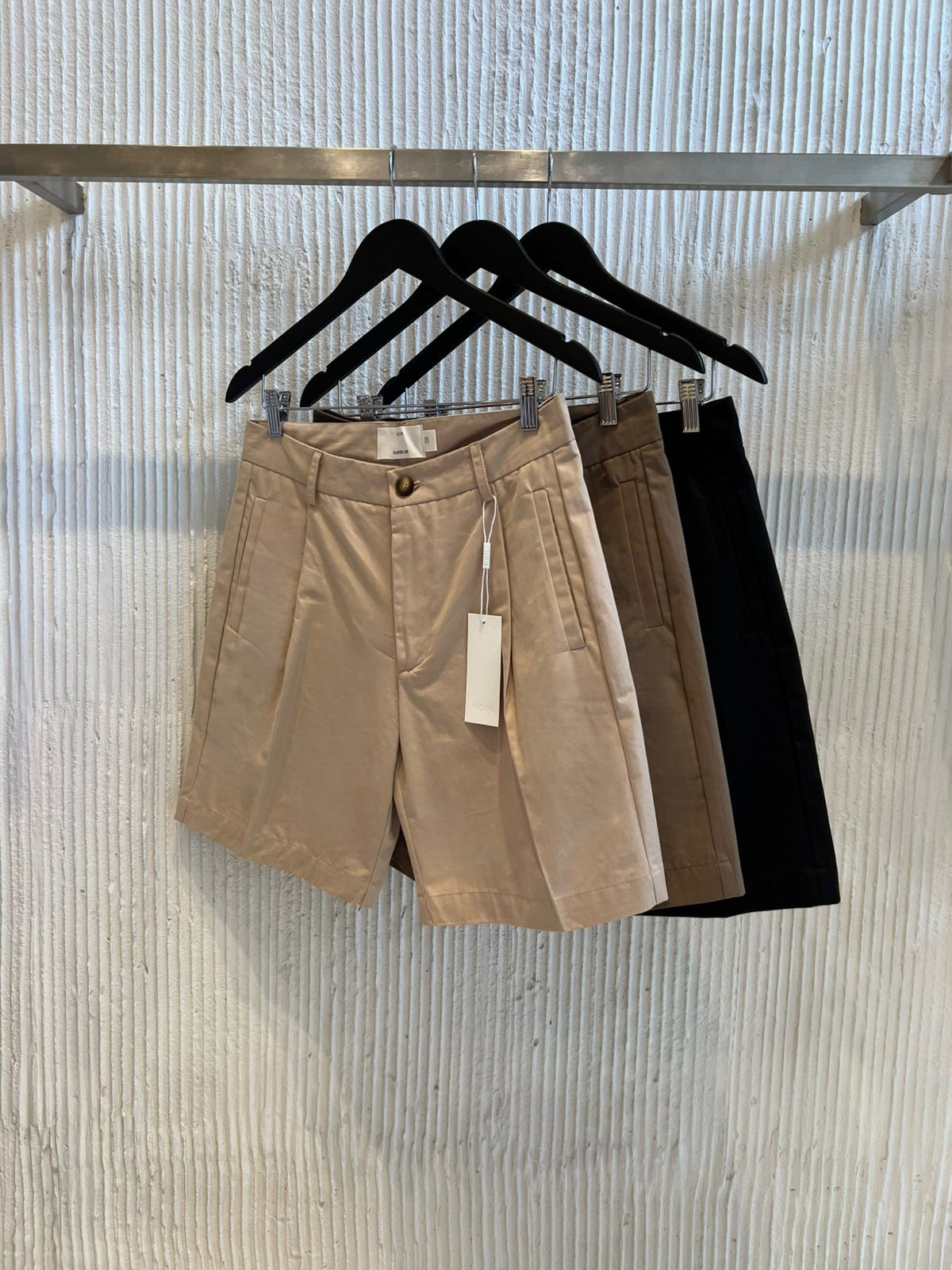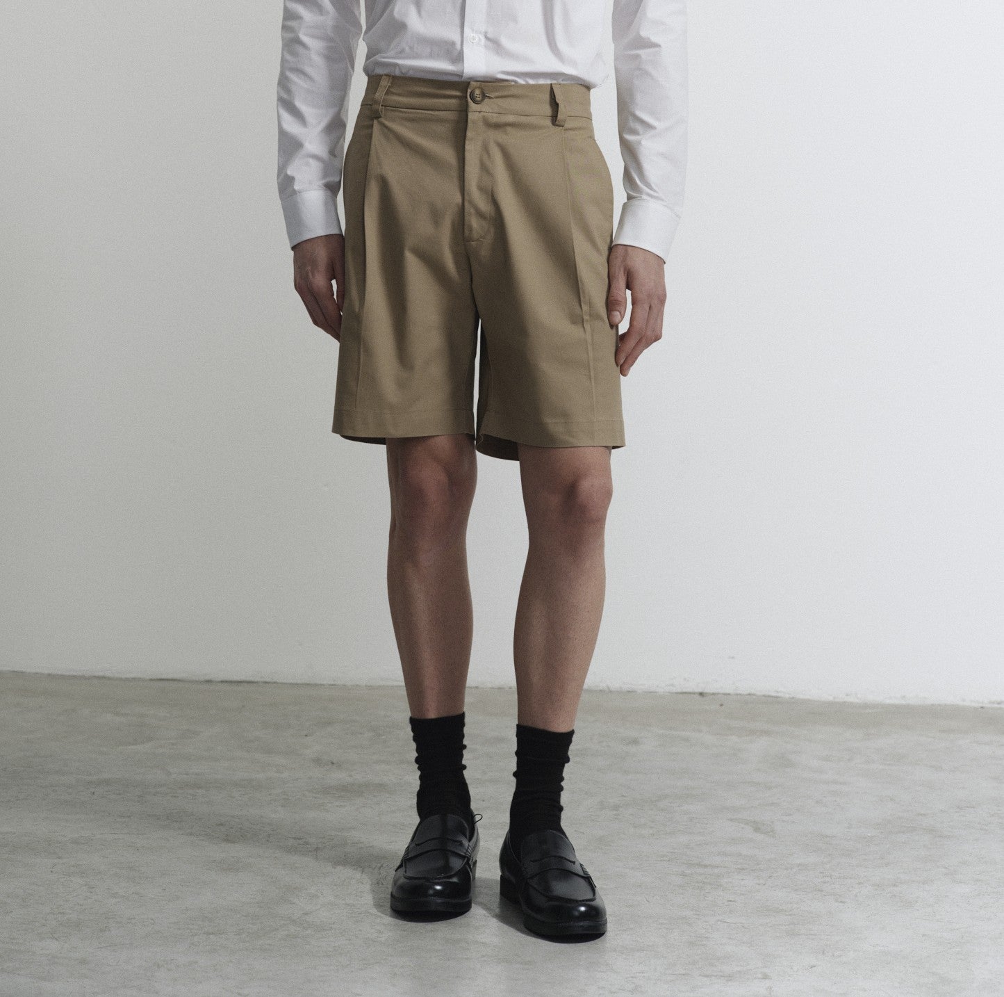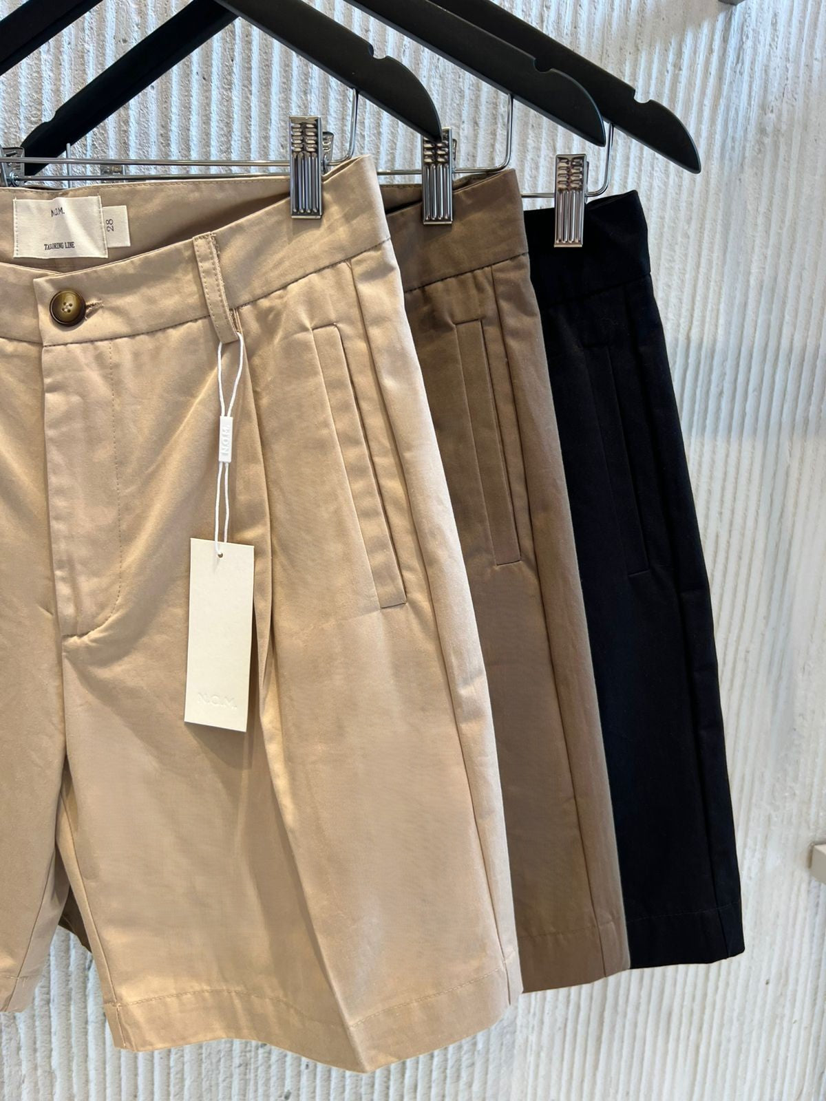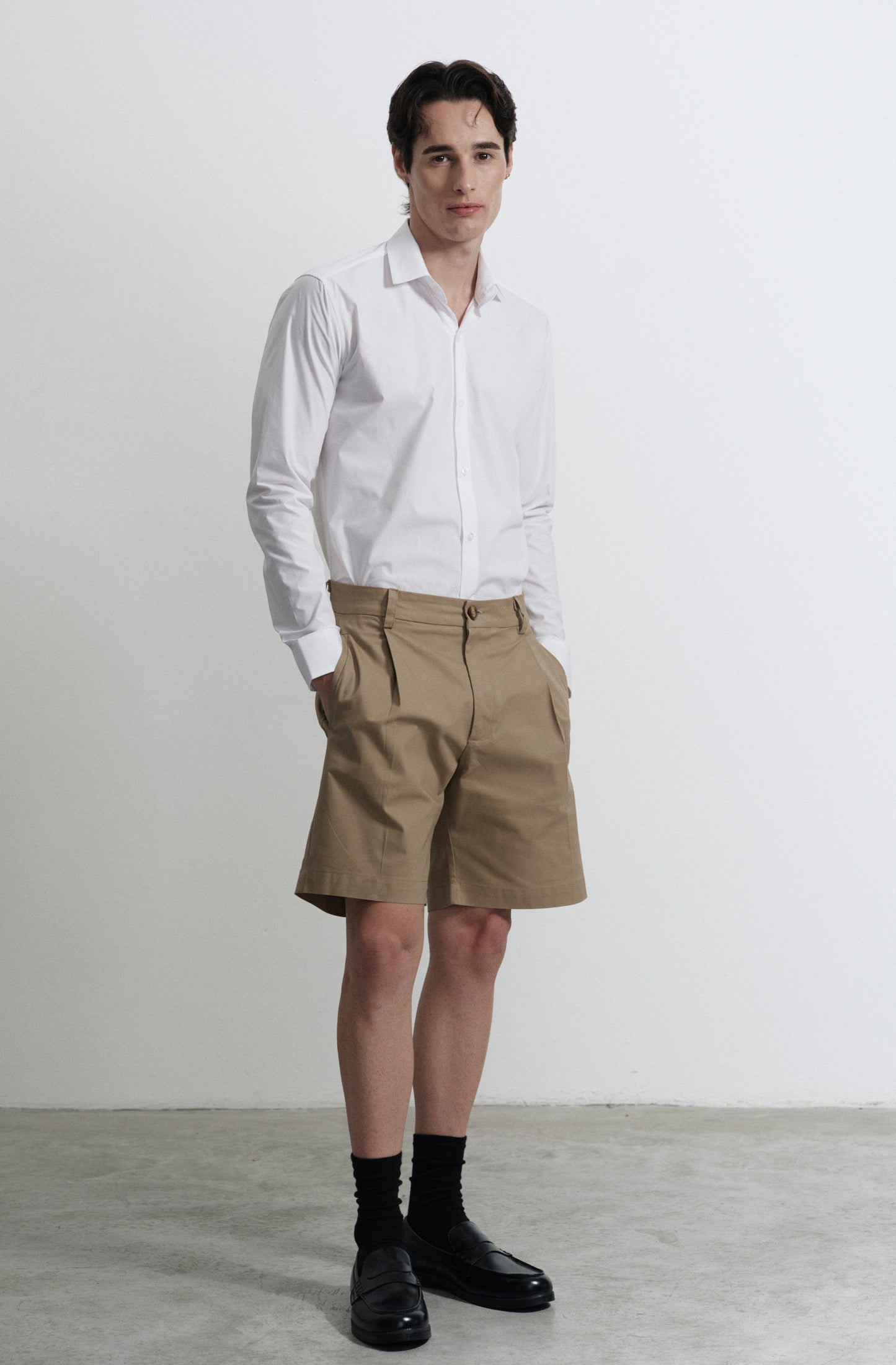 Bermuda sastrera pinzada en gabardina esmerilada importada.