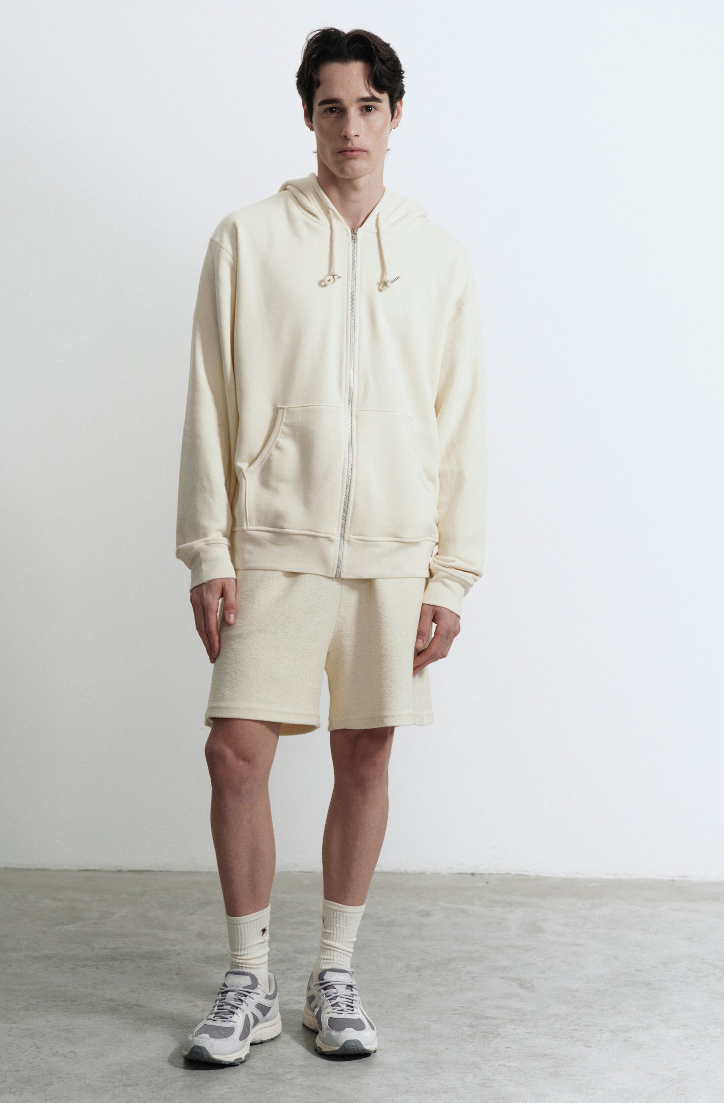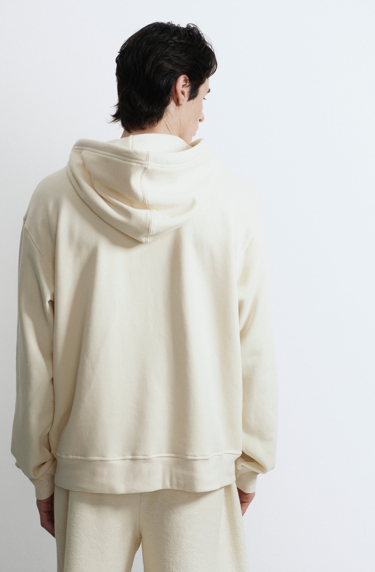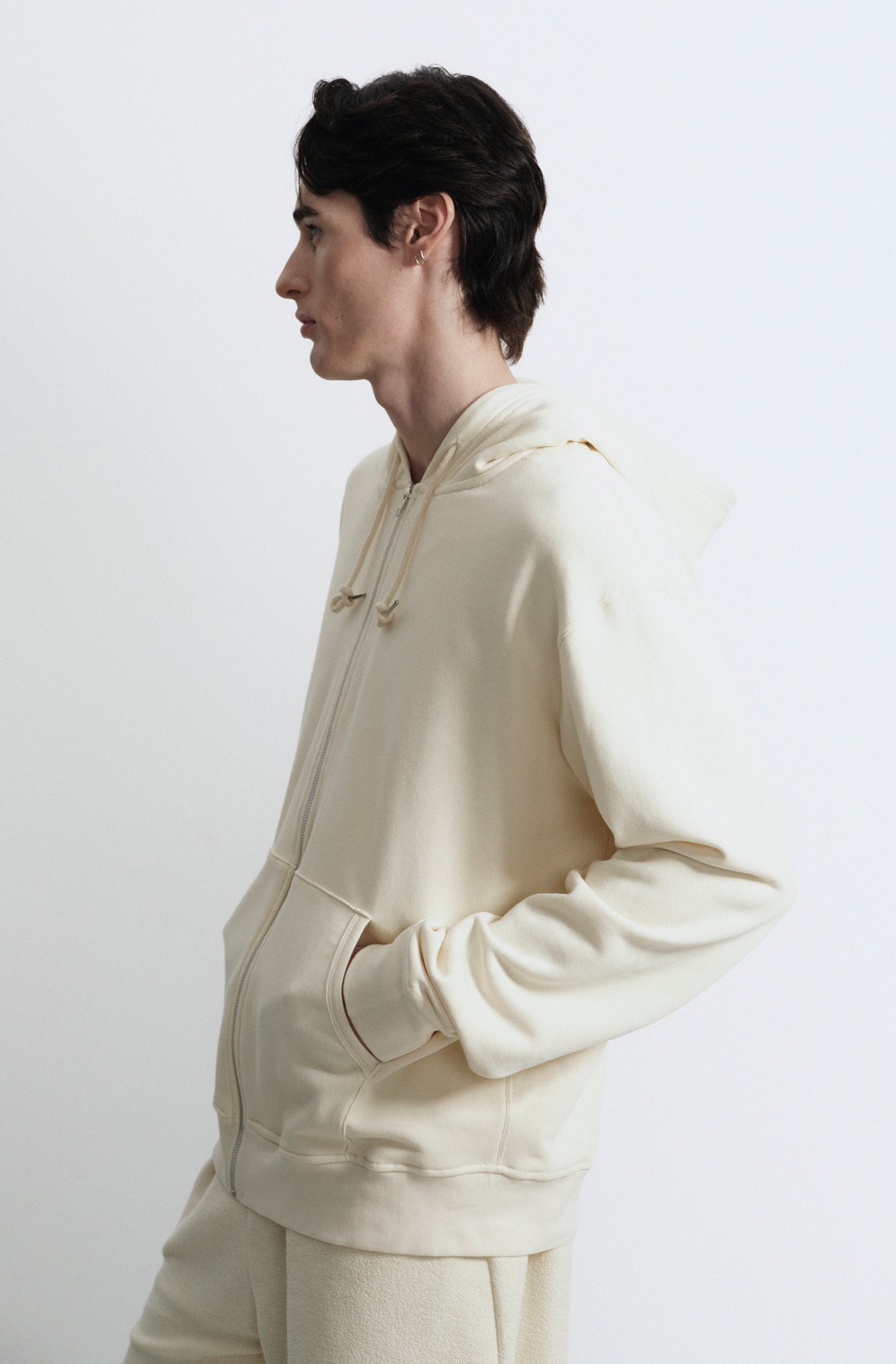 Campera en rustico con capucha, bolsillo canguro y cierre calce regular