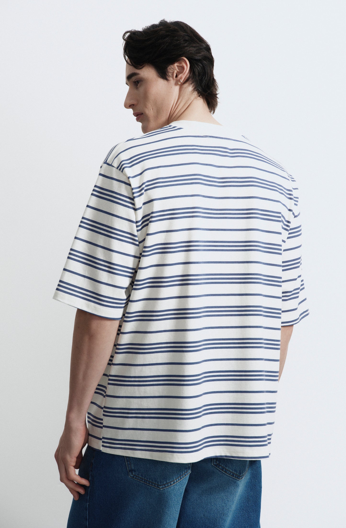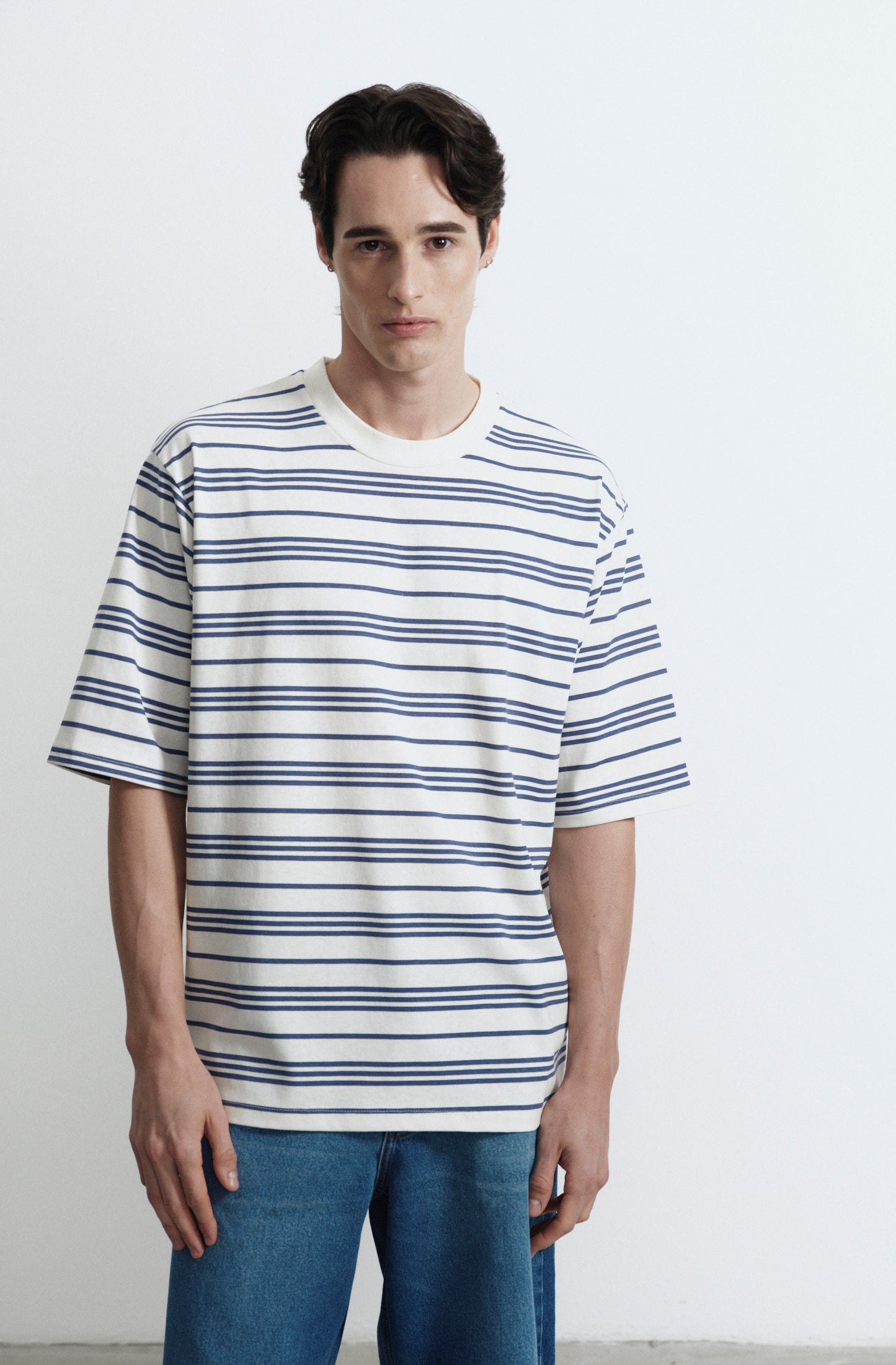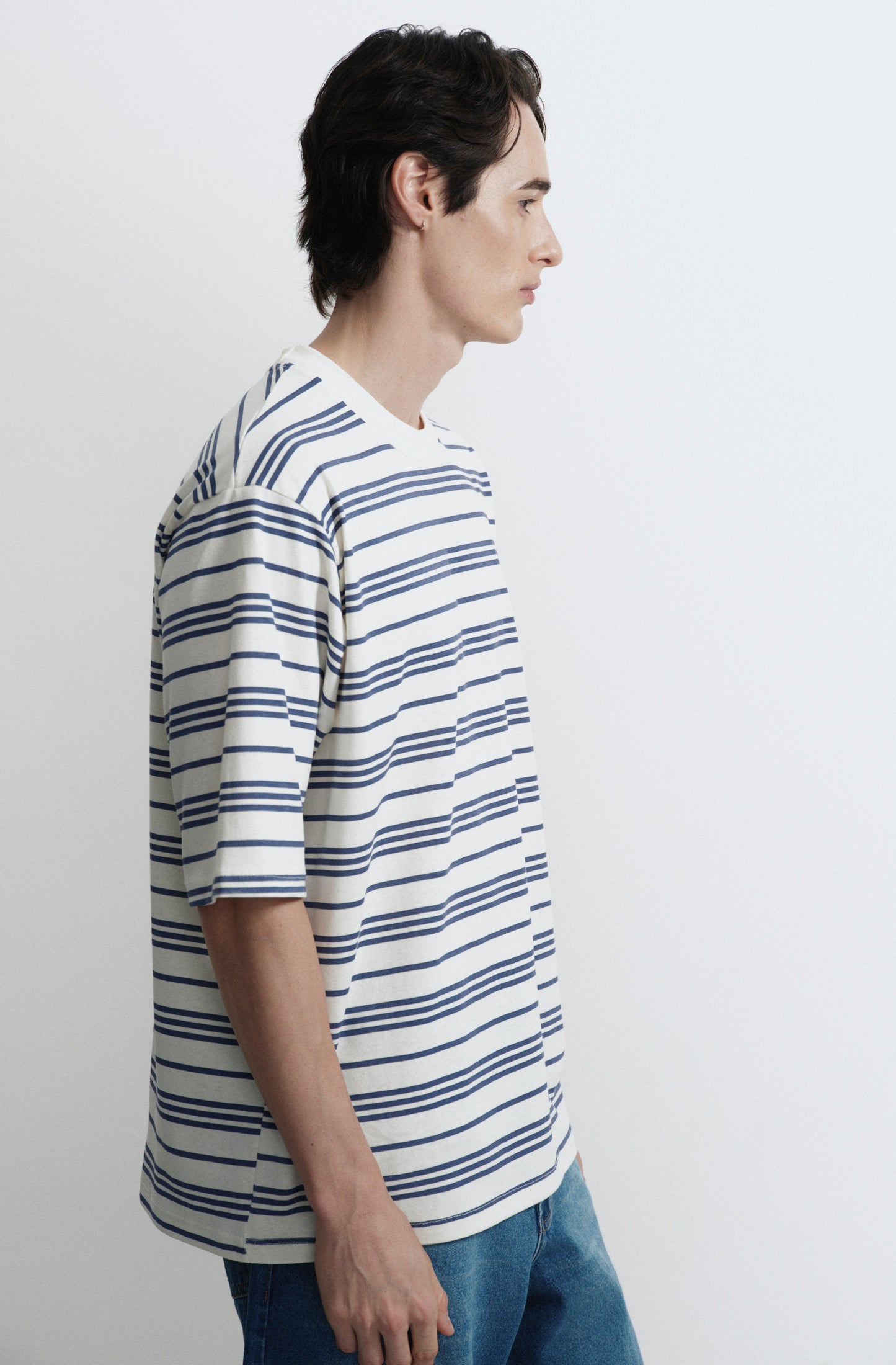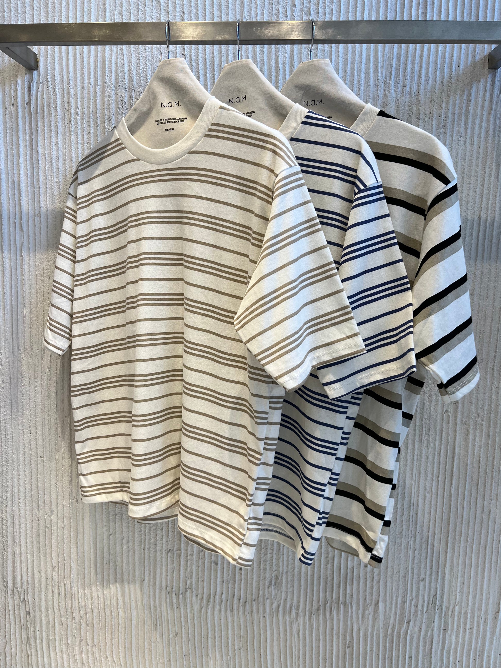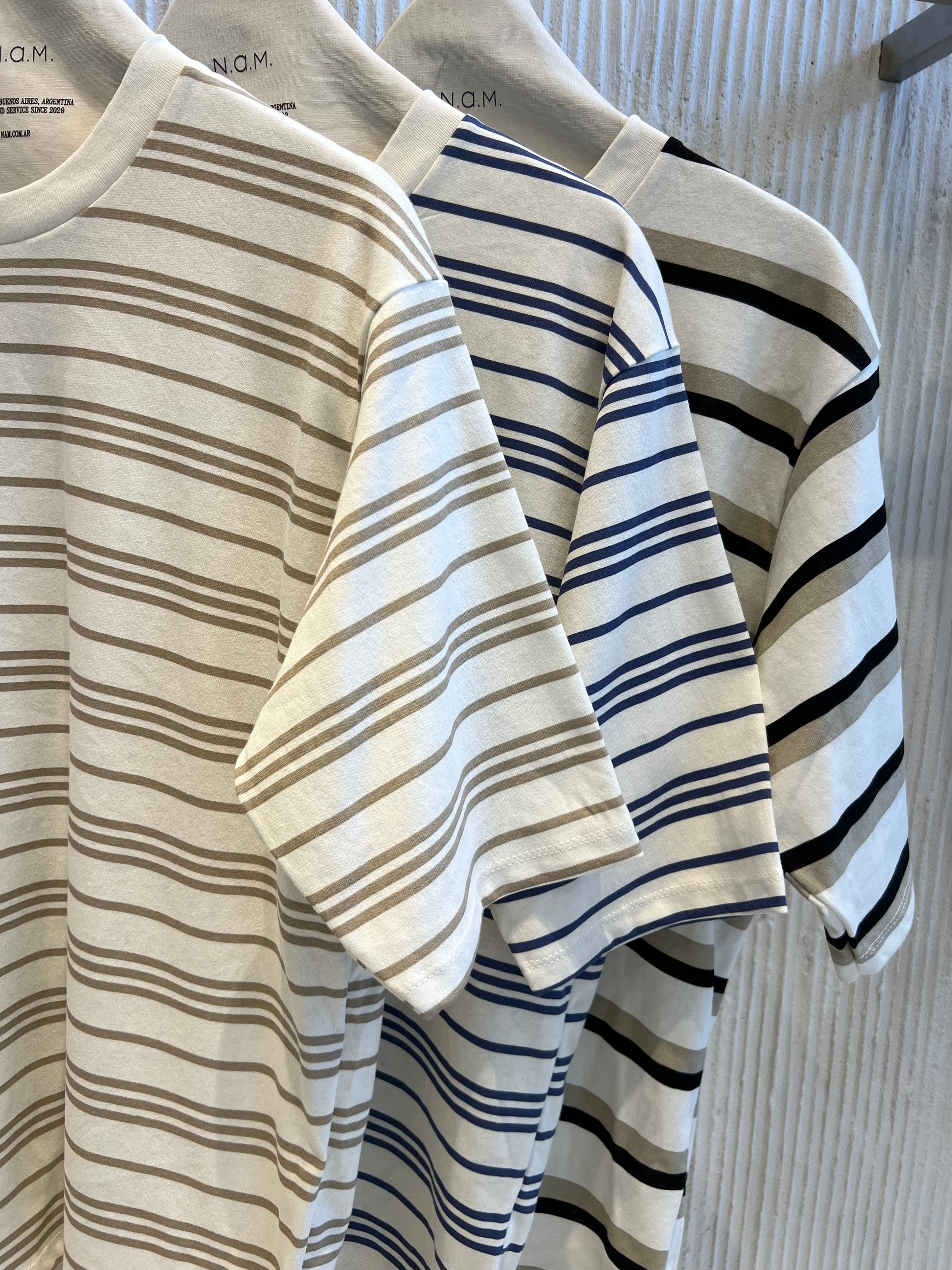 Remera en jersey rayado fino, con cuello en ribb.